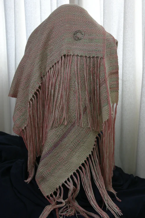 Wyoming is full of dunes — mostly ancient — but near the border with Colorado there are some worthy of a play day. This shawl is woven of linen and fine variegated wool crepe resulting in a pattern like blowing sand.